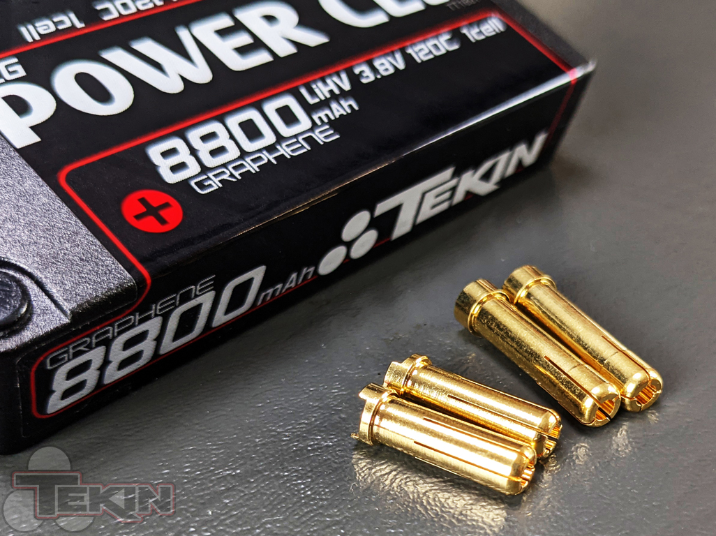 5mm High Power Connectors are standard on Tekin POWER CELL batteries. Gold plated, easy to solder and designed to transfer current efficiently, Tekin Power Plugs cut no corners. 5MM male connectors and 5-to-4mm reducer connectors are included. Balance charge your pack using the 2mm balance port to keep the cell voltages aligned for long lasting power!