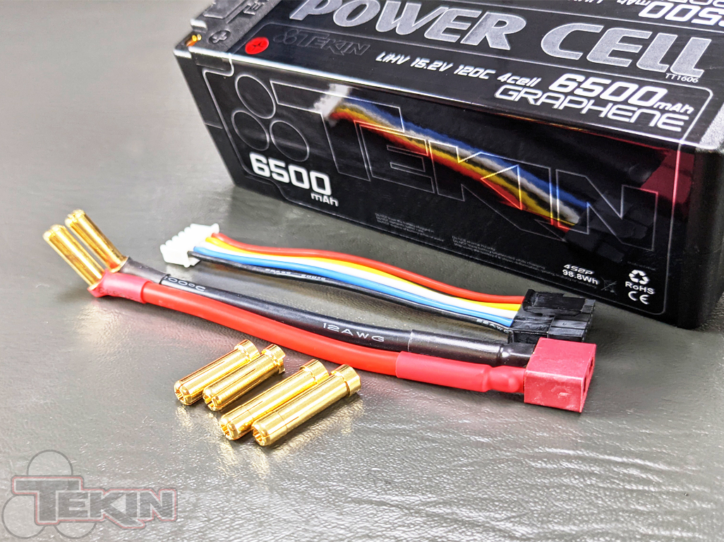 5mm High Power Connectors are standard on Tekin POWER CELL batteries. Gold plated, easy to solder and designed to transfer current efficiently, Tekin Power Plugs cut no corners. 5MM male connectors and 5-to-4mm reducer connectors are included. The balance port is protected by a rubber dust cover so you don't have to worry about debris getting in! The balance wire harness is included with your 4S POWER CELL battery.