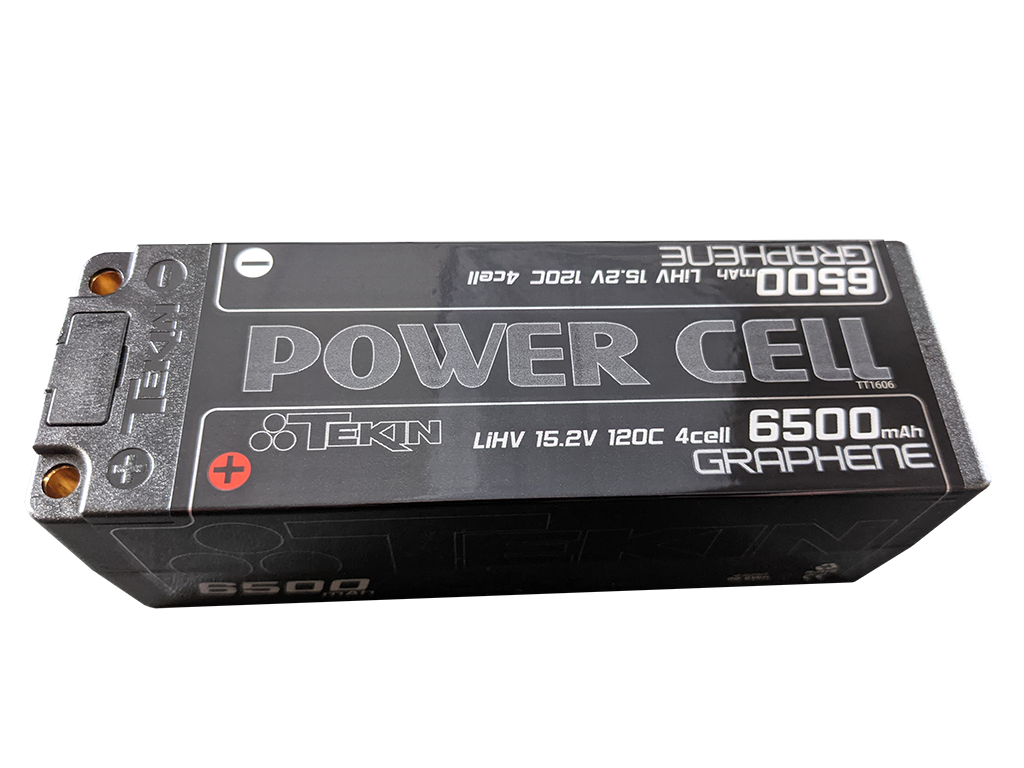 Tekin POWER CELL batteries are High Voltage capable, increasing both the energy density of the cells and the end voltage. Charging your packs up to 4.35V per cell yields more punch due to the higher voltage as well as increased pack capacity, giving your 1:8 Buggy, Truggy, Monster Truck or Car longer run time. Experience more power and less fade during a run with HV POWER CELL battery packs.