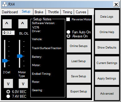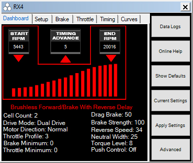 Brushless Modes - FWD Only / FWD-REV / FWD-REV Delay / FWD-REV Delay REV Motor Direction
