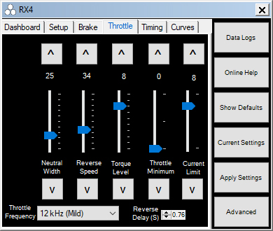 Brushed Modes - FWD Only / FWD-REV / FWD-REV Delay
