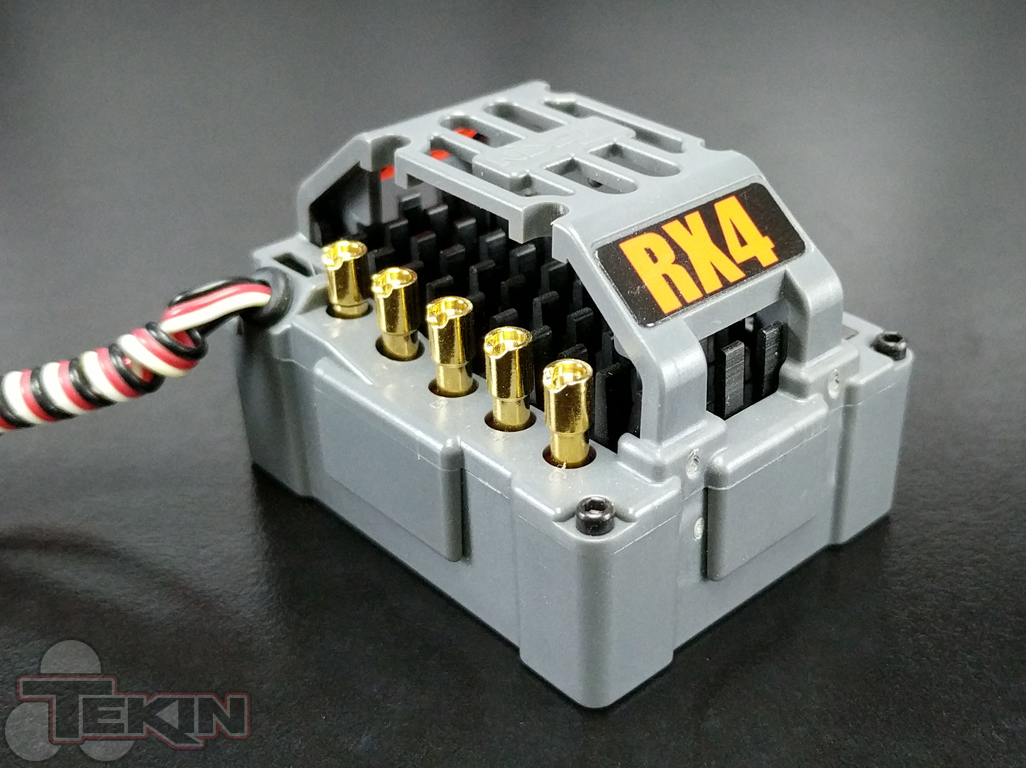 Tekin’s RX4 Brushless Sensored ESC is designed to power your chassis past any obstacle. With massive power handling capabilities, a waterproof* design and all the customization features you’d expect from a Tekin ESC; the RX4 has you covered no matter the situation. Not only reliable, this ESC has a host of built in features like a High Voltage BEC, Drag Brake, Data Logging, Voltage Cutoffs for LiPos, HotWire 3.0 Bluetooth Connectivity and the ability to run either Brushed or Brushless motors. The RX4 defines versatility.