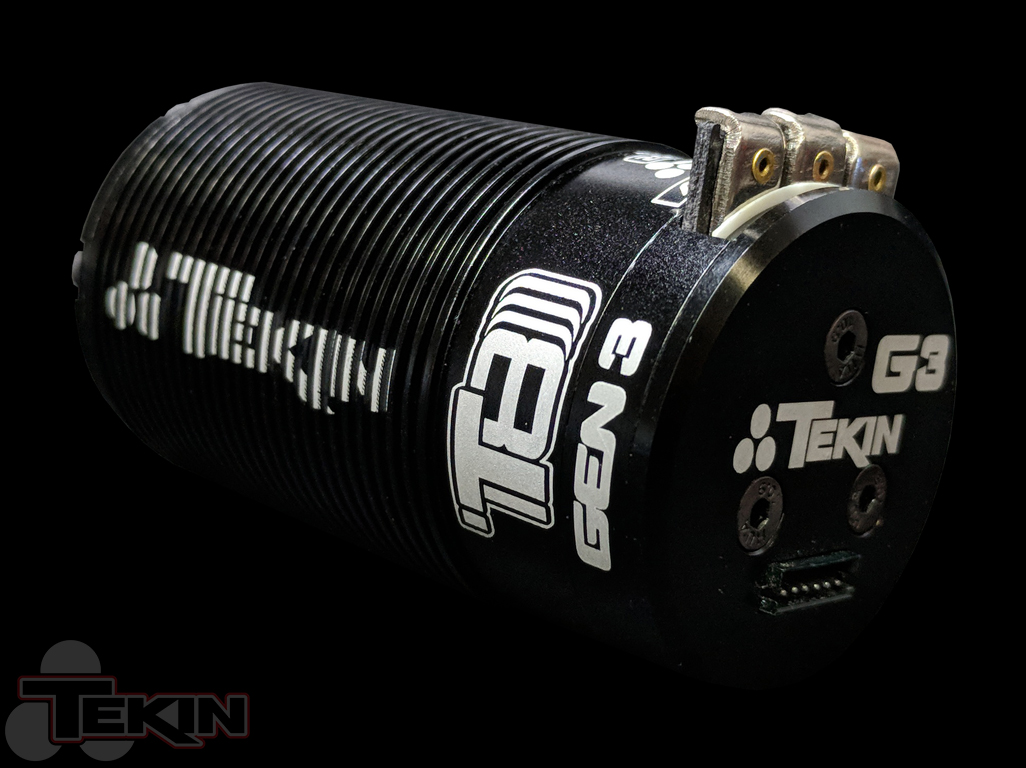 Tekin's T8 GEN3 racing motors are racing performance defined. With a stronger rotor, new stack features and lower resistance the T8 GEN3 motors are a versatile, unmatched and advanced power delivery system. Relentless amounts of torque and power are at your disposal with industry-leading RC motor technology. Coupled with an RX8 GEN3 utilizing Tekin's D2 Dual Drive Technology, the T8 GEN3 packs efficiency and precise control through the entire RPM range. Maintain Pro- level control of your chassis no matter the situation on the track with a T8 GEN3. Pair the T8 GEN3 with an RX8 GEN3 Speed Control for the ultimate in 1:8 scale racing power systems.